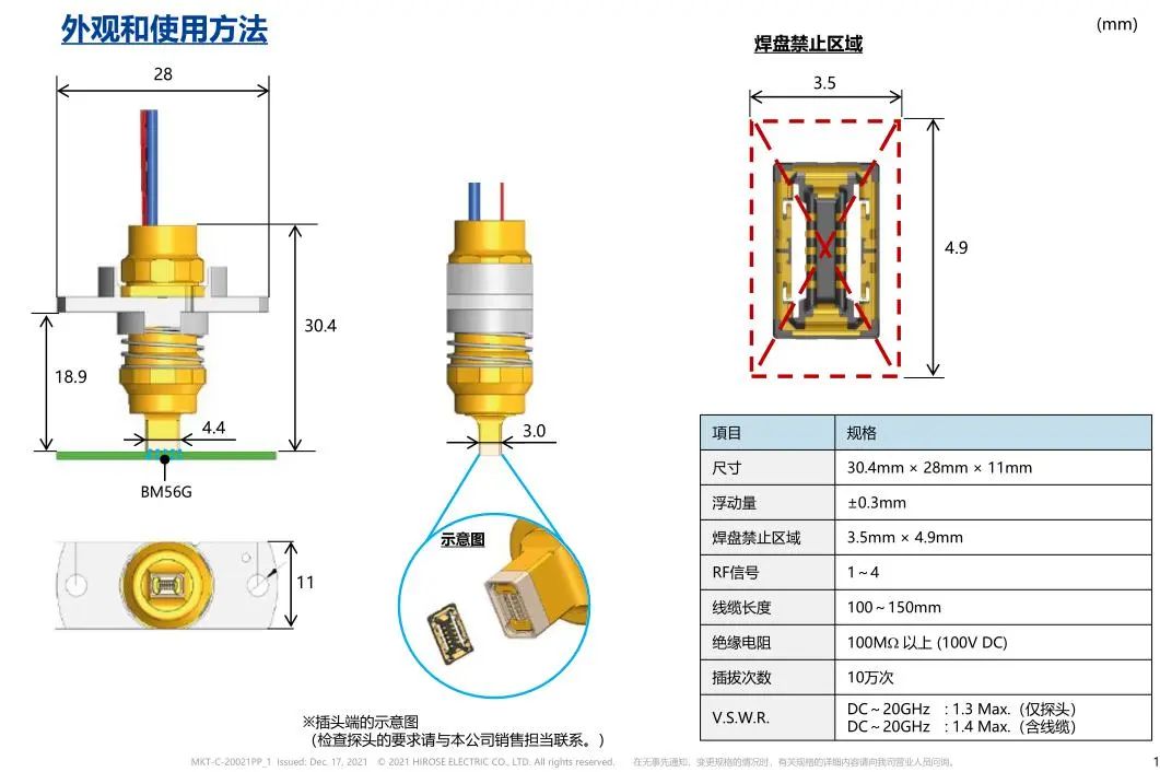 1 . 多觸點RF支持板對FPC連接