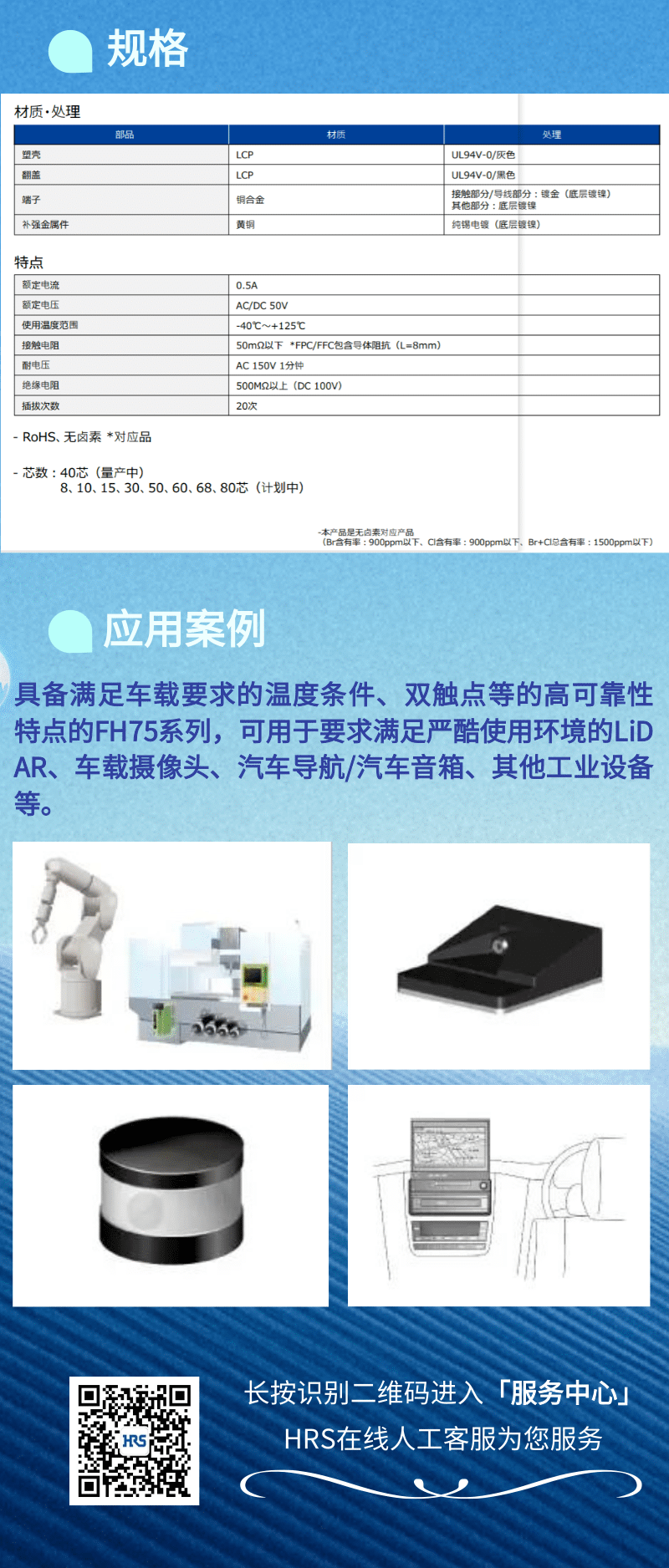 獨立雙觸點的高接觸可靠性間距0.5mm,對應125°C高溫