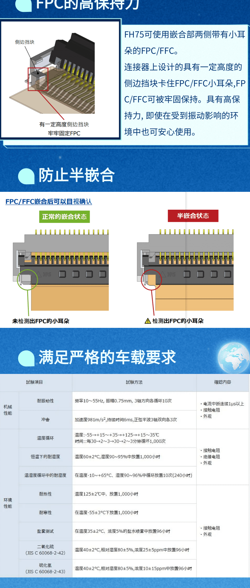 【產品推薦】車載用雙觸點、耐高溫125℃ FPC/FFC連接器-FH75