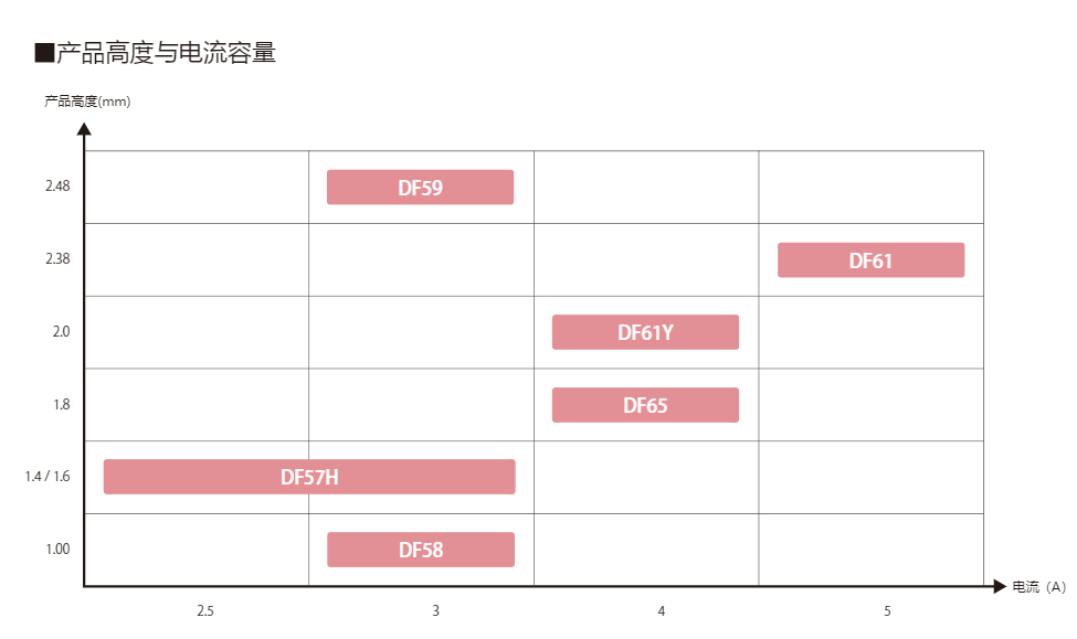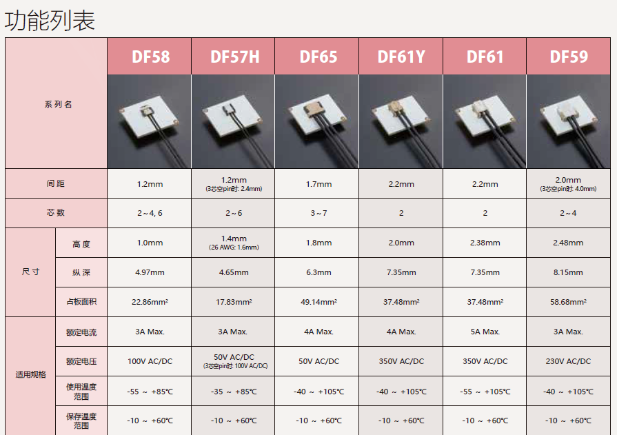 該連接器實現了大電流、省空間,高度為2.0mm。對比DF61,有著更為低薄的構造。小型緊湊,同時支持大電流。